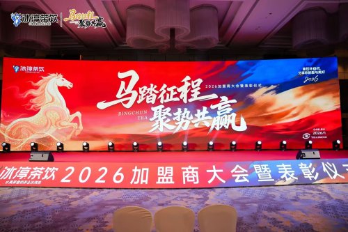2026年1月13日,冰淳茶饮2026年度加盟商大会暨表彰仪式于河南新乡隆重召开。本次大会以“马踏征程 聚势共赢”为主题,汇聚了来自全国各地的加盟商伙伴、品牌高层及行业嘉宾,共同回顾品牌成长历程,共谋新年发展蓝图,凝聚合作共识,展望未来征程。